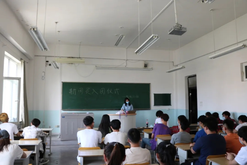 活动伊始,全体起立高唱国歌、团歌,各团支部书记主持本次新团员入团仪式。随后各团支部新团员代表讲述了自己加入了共青团这个大家庭的感想并由老团员为新团员佩戴团徽。最后每一位新入团的团员进行庄严宣誓。