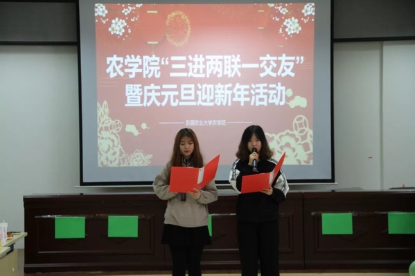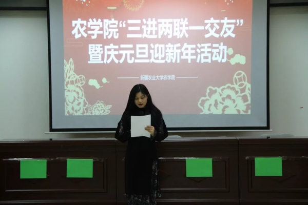 曙光生辉,万物生长。转眼间2020年的元旦到来,为庆祝元旦佳节,促进同学之间的交流和沟通,丰富老师与同学们的课余生活。新疆农业大学FOG电竞 学生会文体部于2020年1月1日在FOG电竞 大会议室举办2020年FOG电竞 “三进两联一交友”暨庆元旦,迎新年活动。
