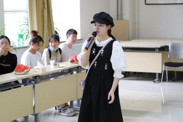 随后,图志182班冯莹为师生们献唱,曼妙动人的歌声营造了师生间温馨的气氛