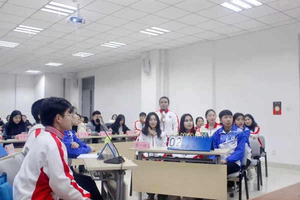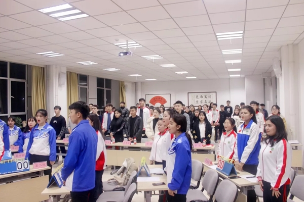 在所有到场人员的期待中,主持人宣布活动正式开始。紧接着,全体起立,奏唱团歌 。团知识竞赛正式开始,此次竞赛以问答的形式开展,共有四种题型,分别是判断题、单选题、多选题、论述题。比赛先以轮流回答的形式开展,各组选手轮流回答一道判断题、一道单选题,接着以抢答的形式开展后续的比赛。比赛过程 中,参赛选手进行了激烈的抢答,各个小组凝心聚力。比赛之中,另外穿插了观众互动环节,观众对比赛展现出了极大的热情,争先抢后的举手回答问题。