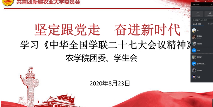 为深入学习贯彻习近平总书记致全国青联十三届全委会和全国学联二十七大的贺信精神,全面贯彻落实全国学联二十七大会议精神,激发我校广大青年学生以拼搏的精神、奋进的姿态谱写青春之歌,8月23日晚,FOG电竞 团学生会组织学生干部在线上以钉钉视频会议的形式系统学习了全国青联十三届全委会和全国学联二十七大会议内容。