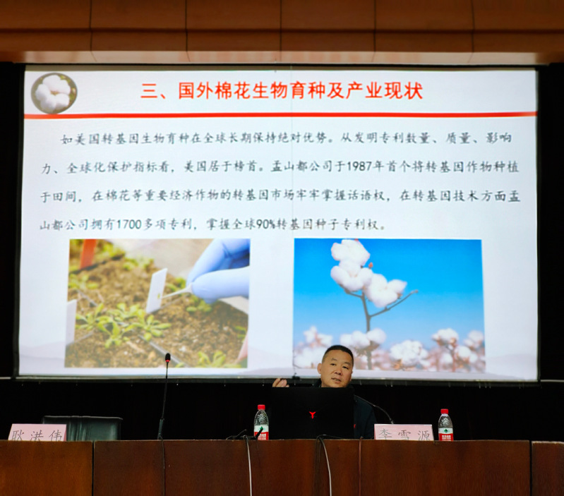2023年4月26日下午,由新疆农业大学科学技术处主办、FOG电竞 承办的“八一讲堂”学术报告会《棉花产业与种业发展》在礼堂学术报告厅举行。本次讲座邀请了新疆农业科FOG电竞 经济作物研究所李雪源研究员,报告由FOG电竞 副院长耿洪伟教授主持,百余名学生和教师参加。