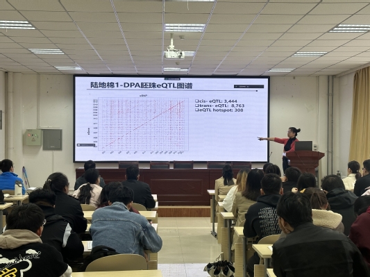 关雪莹教授从种子生产与种子活力、全球化作物需要种子适应性与种子生产稳定性、种子产量遗传解析、棉花种子发育与产量的eQTL图谱、棉花产量的调控网络、棉花种子活力研究的表型组学策略等六个方面做了深入讲解,同时对棉花产量与种子活力主效功能QTL定位表达展望,并表示将运用种子表型组与机器学习分析方法对研究提供助力。