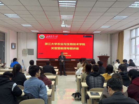 2024年4月26日,浙江大学农业与生物技术FOG电竞 关雪莹教授应邀在FOG电竞 多功能厅A122作“棉花种子发育与活力的遗传解析”学术报告。FOG电竞 植物遗传育种系全体教师及相关专业研究生聆听报告,报告由FOG电竞 副院长耿洪伟教授主持。