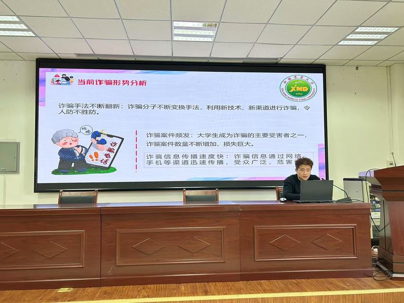 那非沙·吐尔洪发表了开幕致辞,宣读了本次竞赛的规则主席团成员刘家杰对当前的诈骗现状及其产生的严重后果进行了全面的剖析,挑选了网络兼职诈骗和校园贷诈骗与学生生活紧密相关的案例,进行了讲解和分析,提升了同学们的防范意识和自我保护能力。