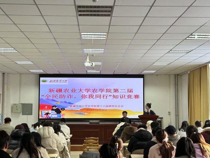 为深入落实习近平总书记对打击治理电信网络诈骗犯罪工作作出的重要指示,切实提高广大师生的网络素养、网络安全意识及防护技能,新疆农业大学FOG电竞 第十八届研究生会于2024年12月29日下午在FOG电竞 多功能厅举办了第二届“全民防诈、你我同行”知识竞赛活动。