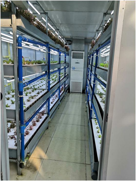 闭锁型智能植物工厂在所有先进设施中格外醒目,据介绍,植物工厂有固定的设施,利用计算机和多种传感装置实行自动化、半自动化对植物生长发育所需的温度、温度、光照强度、光照时间和CO2浓度进行自动调控,采用营养液载培技术,使得产品的数量和质量大幅度提高。在植物工厂内生长的蔬菜,不必像在农田里那样,一字排开地种植,而是可以种在多层架子上,不但节省了许多空间,而且提升了产量。此外,由于是在干净无尘的环境中生长,加上没有使用杀虫剂,植物工厂种植出来的蔬菜营养健全口感不比露天蔬菜差,不需要清洗就能直接品尝。