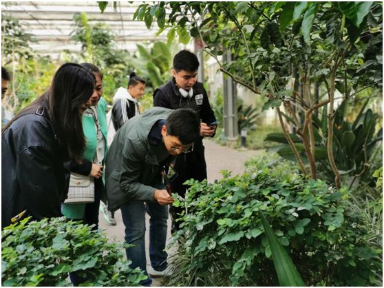 在讲解员的带领下,师生们依次观看了农业信息化展示馆、丝路农耕文化馆、现代农业展示馆。走进农业信息馆,翠绿花香扑面而来,树形优美的嘉宝果、展枝舒叶的双翼豆、争芳斗艳的曼陀罗、花瓣如飞的天堂鸟,还有悬挂枝头的柚子、簇拥繁硕的香蕉,品类繁多,色彩纷呈,充分展示了现代农业高科技管理水平。在现代农业展示馆中,讲解员向师生们介绍了管道栽培、立柱栽培、立柱滴灌、雾状喷灌等先进栽培技术,同学们观看拍照,并拿出笔和笔记本,记录新知识、新思路。